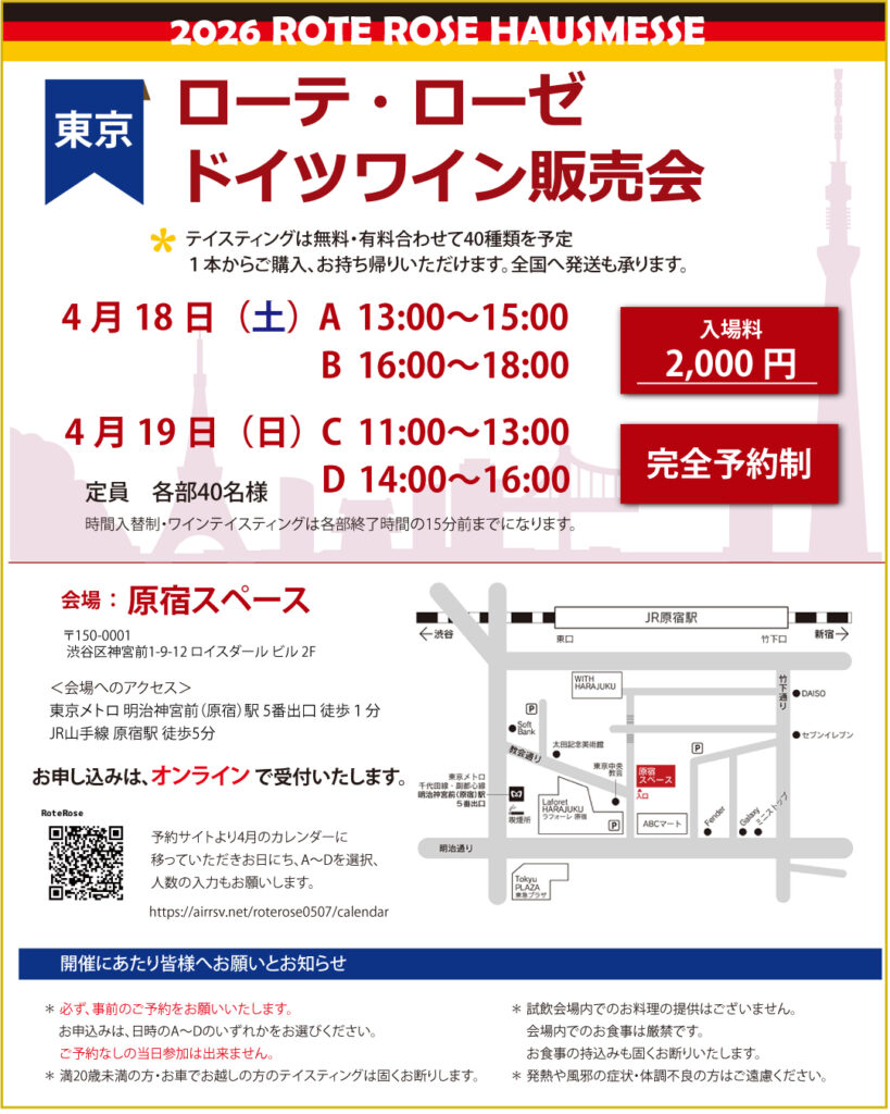 「ローテ・ローゼ 東京ドイツワイン販売会」を開催いたします。